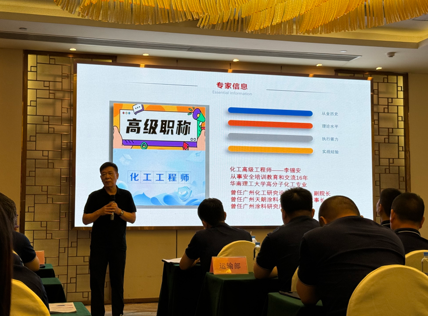 為進一步加強企業(yè)安全生產主體責任落實,提升安全生產管理水平,切實貫徹落實2025年全國安全生產月“人人講安全、個個會應急——查找身邊安全隱患”的主題。2025年6月7日,海龍化工“安全生產月專題培訓活動”在蕉嶺迎賓館順利開展,本次活動邀請了化工高級工程師李錫安老師為大家授課,公司董事長賴仕海先生,總經理龍偉國及古洵先生出席了此次活動。