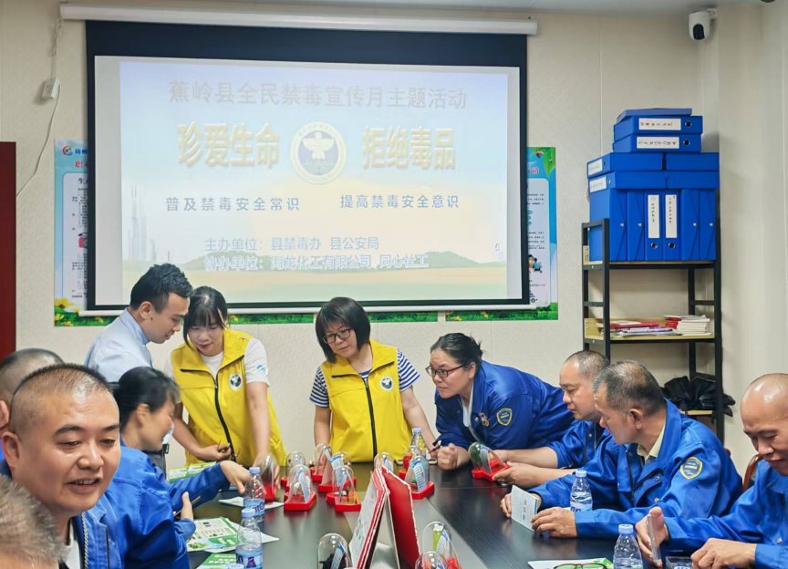 為切實提高廣大職工識毒、防毒、拒毒意識,增強(qiáng)廣大職工自覺抵制毒品的能力,結(jié)合今年全民禁毒宣傳月的“健康人生、綠色無毒”的主題,6月10日,蕉嶺縣禁毒辦、蕉嶺縣公安局在海龍化工廠區(qū)開展“珍愛生命,拒絕毒品”為主題的禁毒宣傳活動。
